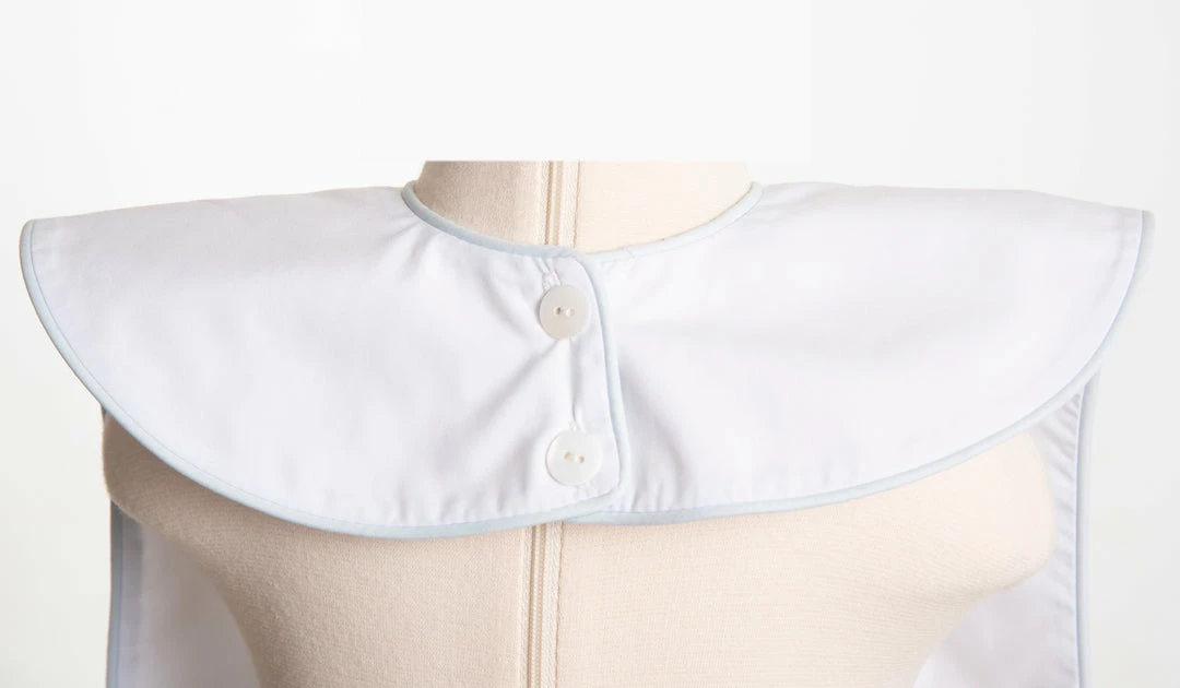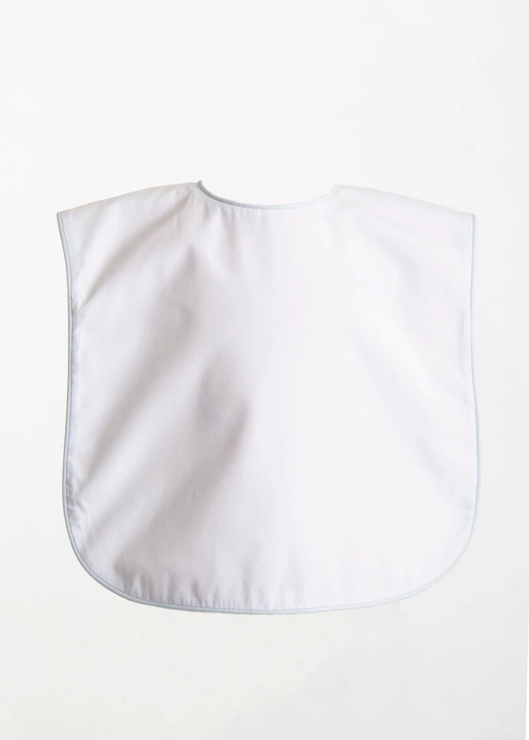 Children dressed in beautiful clothing should be covered with a beautiful bib to protect them while eating. Our Brookshire Bib is designed just big enough to keep those precious garments safe. The Brookshire Bib is made of broadcloth, fully lined and piped in white with a two mother of pearl closure in the back.ย Perfect as is or with a sweet monogram.