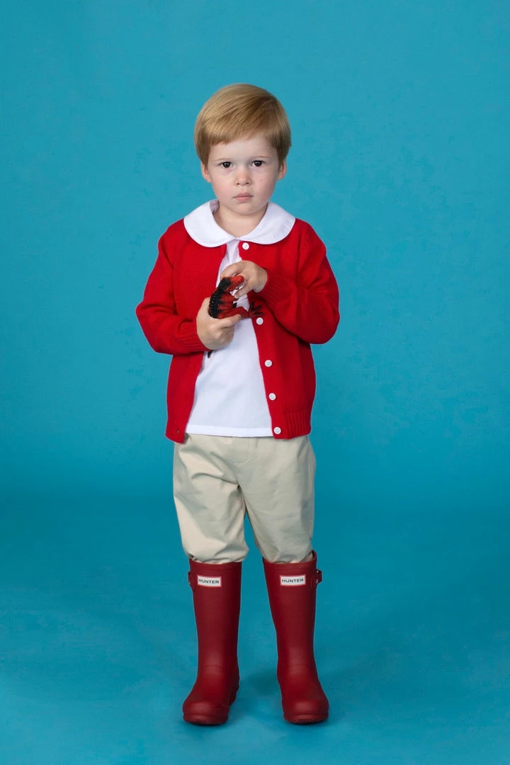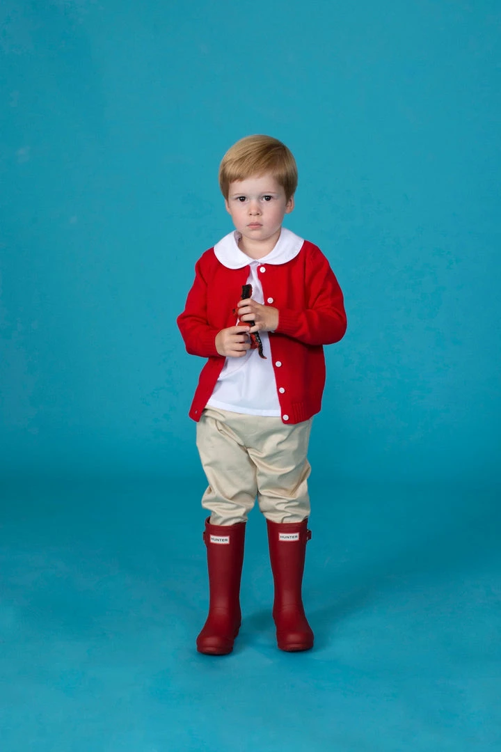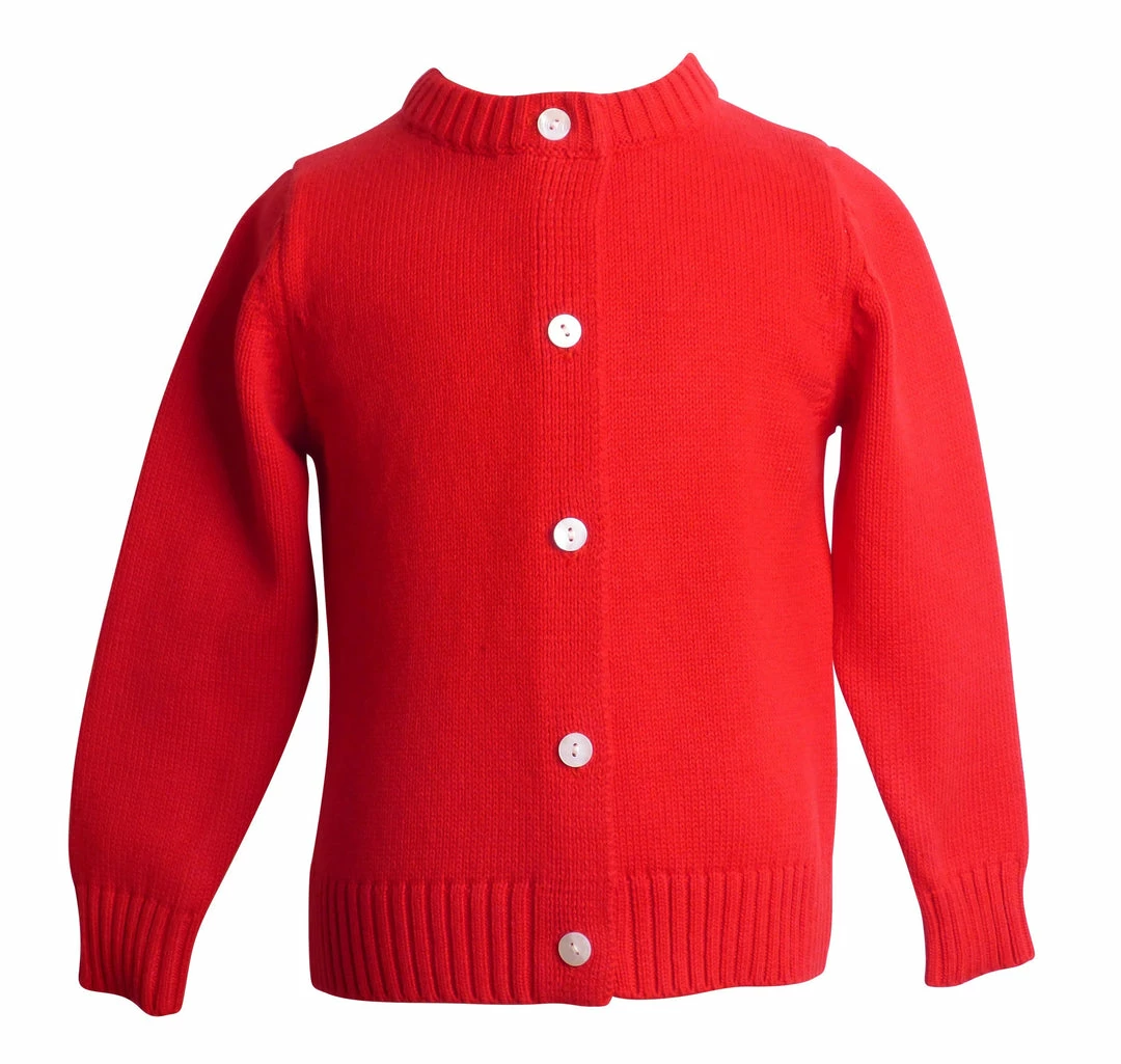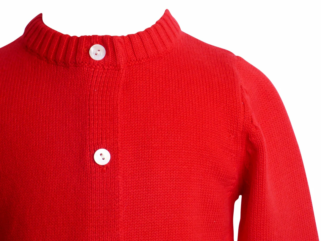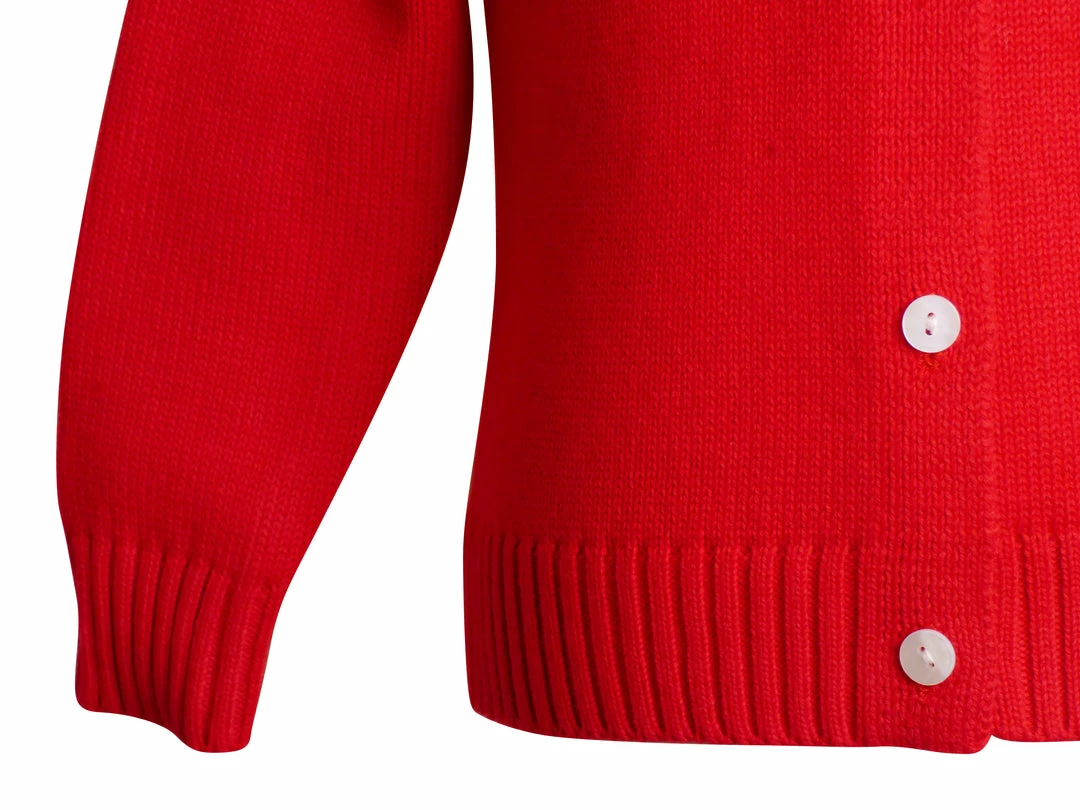 Fine knit unisex cardigan with mother of pearl buttons opening down the front and ribbing at neckline, cuffs and hem. This light weight sweater is the perfect accent to transition your wardrobe as the weather cools. Wash and wear poly cotton blend.