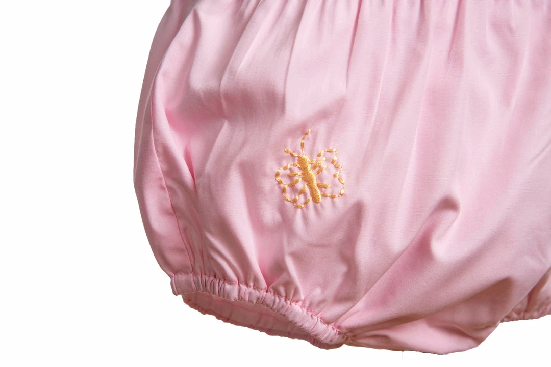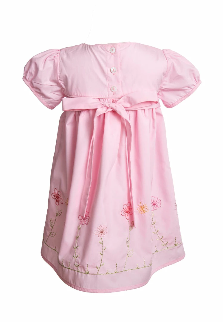 Dress is fully lined.Β Sizes 12m – 24m comes with a diaper cover embroidered in matching butterflies.