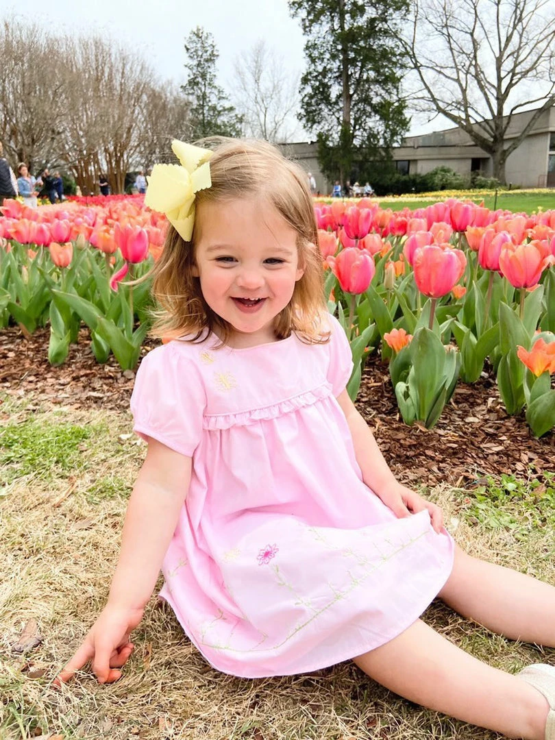 What girl doesn’t love flowers, butterflies and the color pink?Β This dress has it all!Β Β