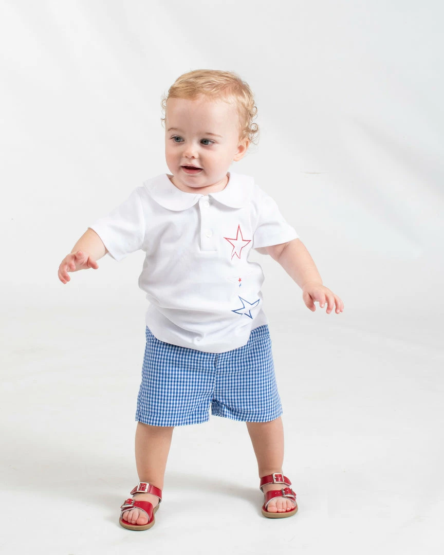 See the Alexander diaper cover or shorts in blue gingham to complete the outfit. Little brother will love the Somerset Boy Sunsuit. See the Somerset Sunsuit or Sophie Sundress for a precious sister match.